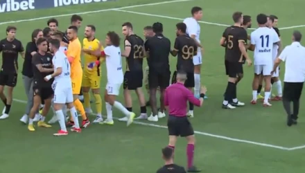 Στη συμπλοκή που ακολούθησε πήραν μέρος αρκετοί παίκτες. Ο διαιτητής και πιο οι πιο ψύχραιμοι παρενέβησαν και μετά από διακοπή περίπου πέντε λεπτών τα πνεύματα ηρέμησαν.