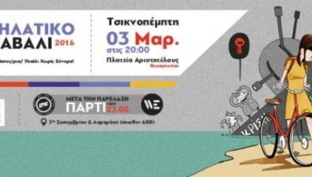 Για έβδομη συνεχόμενη χρονιά διοργανώνεται αύριο, Τσικνοπέμπτη 3 Μαρτίου 2016 στις 8μμ, στην Πλατεία Αριστοτέλους Θεσσαλονίκης, το Ποδηλατικό Καρναβάλι.