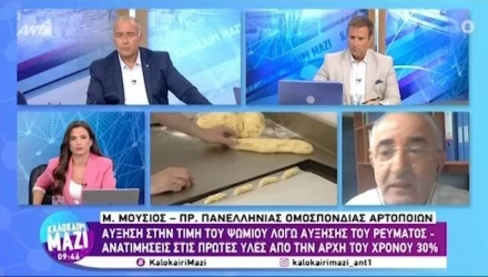 Στην εκπομπή Καλοκαίρι Μαζί μίλησε ο πρόεδρος της πανελλήνιας ομοσπονδίας Αρτοποιών για την αύξηση στην τιμή του ψωμιού εξαιτίας της αύξησης του ρεύματος
