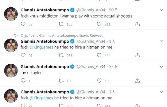 Ο Γιάννης Αντετοκούνμπο έπεσε θύμα χάκερ που ανέβασαν εμετικά σχόλια στον λογαριασμό του στο Twitter για τους Μπακς, τον ΛεΜπρόν, τον Κόμπι Μπράιαντ και… όλο το ΝΒΑ!
