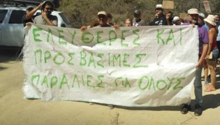 Με πανό και συνθήματα για ελεύθερες παραλίες το κίνημα της πετσέτας παραγματοποιήσε πορεία διαμαρτυρίας στο Πολύχρονο Χαλκιδικής.