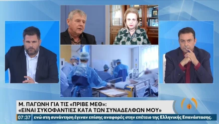 Στην εκπομπή "Από τις Έξι" στην ΕΡΤ υπήρξε έντονος διάλογος ανάμεσα στον πρόεδρο της ΠΟΕΔΗΝ, Μιχάλη Γιαννακό, και την πρόεδρο της ΕΝΑΠ, Ματίνα Παγώνη,για τις καταγγελίες του πρώτου για κρεβάτια ΜΕΘ που παραμένουν κενά για VIP.