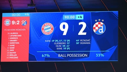 Η Μπάγερν διέλυσε με 9-2 την Ντιναμό Ζάγκρεμπ στο Μόναχο και έγραψε ιστορία στην πρεμιέρα του Champions League. Οι Βαυαροί όντας καταιγιστικοί στο πρώτο τους ματς για φέτος στην κορυφαία διασυλλογική διοργάνωση φιλοδώρησαν με εννιά τέρματα τους Κροάτες έχοντας σε μεγάλη μέρα τον Χάρι Κέιν, ο οποίος πέτυχε καρέ τερμάτων (τα τρία από τα τέσσερα γκολ προήλθαν από την άσπρη βούλα). Έτσι, η Μπάγερν Μονάχου έγινε η πρώτη ομάδα που φτάνει σε αυτόν τον τρομερό αριθμό τερμάτων, με τους Κροάτες να πληρώνουν το... τίμημα.