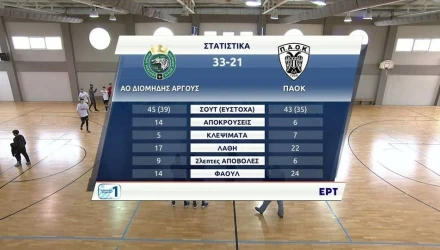 Το πρώτο ημίχρονο τελείωσε στο 18-10. Στο δεύτερο ημίχρονο δεν άλλαξε κάτι με τον Διομήδη να φτάνει στη νίκη με 33-21.