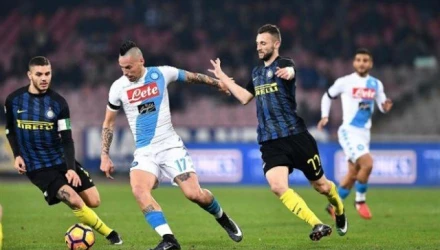 Η πρώτη καλή στιγμή του αγώνα ανήκε στη Νάπολι. Ο Μέρτενς ντρίπλαρε όποιον βρήκε αλλά την τελευταία στιγμή ο Χαντάνοβιτς τον πρόλαβε πριν κάνει τη ζημιά. Η απάντηση της Ίντερ ήταν άμεση καθώς το σουτ του Καντρέβα βρέθηκε στην αγκαλιά του Ρέινα. Η Νάπολι συνέχισε την πίεση με τον Μάρεκ Χάμσικ να μην εκμεταλέυεται την σέντρα μιας και η κεφαλιά του πέρασε ψηλά άουτ. Ο Μέρτενς στο 35ο λεπτό έχασε μια τεράστια ευκαιρία καθώς το δυαντό του σουτ τράνταξε το αριστερό δοκάρι της εστίας του Χαντάνοβιτς. Η πίεση έφερε αποτέλεσμα στο 43ο λεπτό του πρώτου ημιχρόνου, στο καλύτερο χρονικά σημείο. Ο Καλιεχόν εκμεταλεύτηκε το τραγικό λάθος της άμυνας των Μιλανέζων και άνοιξε το σκορ από κοντά.