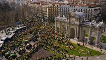 Χιλιάδες αγρότες από όλη την Ισπανία κατέβηκαν στους δρόμους της Μαδρίτης σε μια συναυλία από κόρνες, κουδούνια αγελάδων και τύμπανα, ανταποκρινόμενοι στο κάλεσμα της Ένωσης Συνδικάτων (Union de Uniones) αλλά και ομάδων αγροτών που κινητοποιήθηκαν στα μέσα κοινωνικής δικτύωσης.