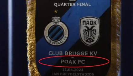 Αυτό σίγουρα… δεν πήγε και πολύ καλά για την Κλαμπ Μπριζ. Η σημερινή αντίπαλος του ΠΑΟΚ στο Conference League τύπωσε λάθος το όνομα του ΠΑΟΚ στο λάβαρο που θα ανταλλάξει με τον Δικέφαλο του Βορρά πριν τη σέντρα του αγώνα.