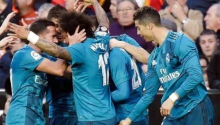 Η Ρεάλ έφυγε με το εμφατικό 4-1 από την έδρα της Βαλένθια και στο πιο παράξενο στιγμιότυπο της αναμέτρησης ο Πορτογάλος σούπερ σταρ πιάστηκε από τον φακό να... βάζει δάχτυλο στον Μαρσέλο κατά τη διάρκεια των πανηγυρισμών μετά το γκολ του τελευταίου!