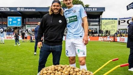 Tilskuerne på Sydbank Park valgte Maxime Soulas som Kampens Spiller, og han fik efter kampen overrakt sin præmie fra dagens kampsponsor, @GroundhoppingT - 55 kilo nyopgravede kartofler 🥔 😲🤝 pic.twitter.com/IO7RESgJUu