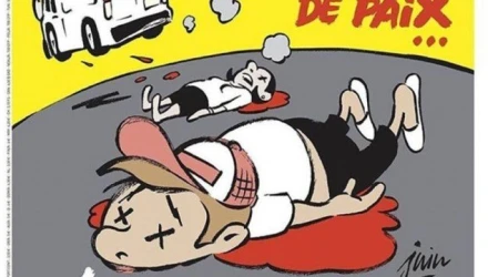 Όπως μεταδίδει το ΑΠΕ-ΜΠΕ, το εξώφυλλο αναρτήθηκε στον λογαριασμό της εφημερίδας στο Facebook την Τρίτη πριν από την κυκλοφορία της εφημερίδας την Τετάρτη. Στο πρωτοσέλιδο δεσπόζει ένα σχέδιο που υπέγραψε ο σκιτσογράφος Juin όπου απεικονίζεται ένα μικρό φορτηγάκι να απομακρύνεται, αφού έχει παρασύρει και σκοτώσει πεζούς. Η λεζάντα γράφει: "Ισλάμ, θρησκεία της αιώνιας... ειρήνης".