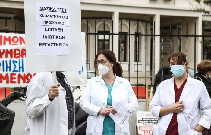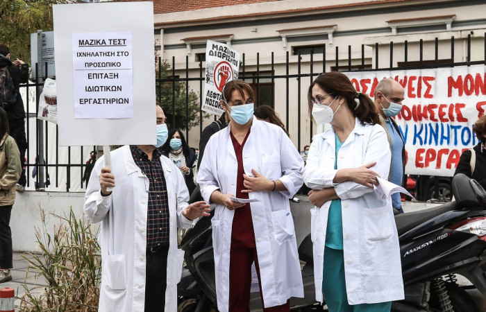 Οι εργαζόμενοι καταλογίζουν στην κυβέρνηση πως άφησε το σύστημα υγείας ανοχύρωτο ενόψει του δεύτερου κύματος της πανδημίας χωρίς να δημιουργηθούν κλίνες ΜΕΘ ή να γίνουν προσλήψεις προσωπικού.