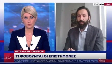 Τον κώδωνα του κινδύνου έκρουσε ο Ιωάννης Πρασσάς, Διδάκτωρ Μοριακής Βιολογίας του Πανεπιστημίου του Τορόντο μιλώντας στον ΣΚΑΙ: «Εάν θέλουμε να είμαστε αντικειμενικοί, με τα δεδομένα που έχουμε σήμερα, δεν γνωρίζουμε πόσο χειρότερο είναι το στέλεχος Ομικρον σε σχέση με τα τρία ήδη γνωστά στελέχη κορωνοϊού.»