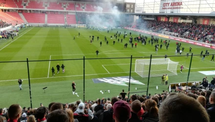 Ολο αυτό είχε ως αποτέλεσμα να γίνει μια σύρραξη, ο διαιτητής να στείλει τις ομάδες στα αποδυτήρια αρχικά. Στη συνέχεια οι οπαδοί της Σλόβαν οδηγήθηκαν εκτός σταδίου από την αστυνομία, ωστόσο το παιχνίδι διεκόπη οριστικά.