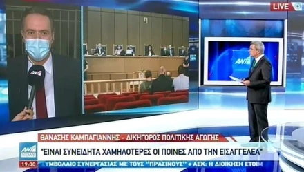 O συνήγορος θυμάτων κ. Καμπαγιάννης μίλησε για την στάση της εισαγγελικής αρχής σε όλη την διάρκεια της δίκης της Χρυσής Αυγής, ενώ έκανε εκτίμηση ότι το δικαστήριο θα διαφοροποιηθεί από τις προτάσεις που έγιναν για τις ποινές.