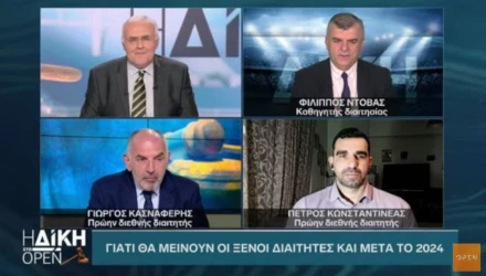 Την παραμονή των ξένων διαιτητών στο ελληνικό ποδόσφαιρο και μετά το 2024 αποκάλυψε ο Κυριάκος Θωμαΐδης στην εκπομπή «Δίκη στο Open» Σύμφωνα με όσα είπε, υπάρχει απόφαση της ευρωπαϊκής ομοσπονδίας για την παραμονή τους για άλλα 5 χρόνια.