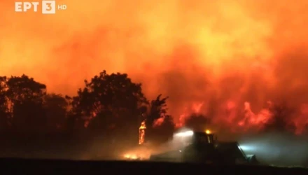 Σύμφωνα με το ρεπορτάζ, ο αέρας δυσχέραινε, πάντως, το έργο των πυροσβεστών, ενώ τρακτέρ και γκρέιντερ έκαναν συνεχώς αντιπυρικές ζώνες για να μη φτάσει η πυρκαγιά στο χωριό Ευαγγελισμός.