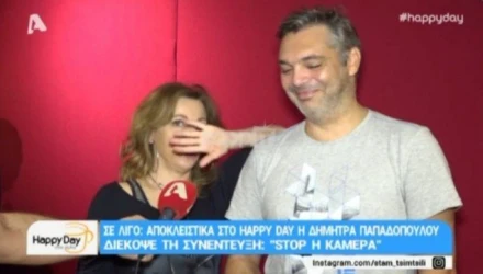 Η ηθοποιός δε θέλησε όμως να συνεχίσει την συνέντευξη της στο Happy Day, διακόπτοντας με τρόπο και με το ιδιαίτερο στυλ της…