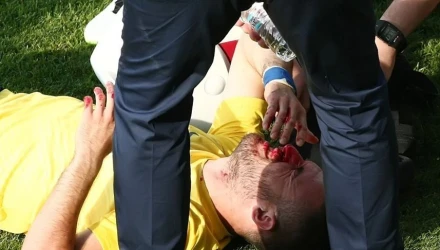 Συγκεκριμένα, η αναμέτρηση βρισκόταν στο 34ο λεπτό όταν ο άσος των Αρκάδων διεκδίκησε δυναμικά την μπάλα από τον Νάνο, με τον τελευταίο να πηγαίνει εξίσου δυνατά για να την πάρει πίσω. Αυτό είχε ως αποτέλεσμα να... γκρεμίσει τον Γιαννιώτα, ενώ ο επερχόμενος Λαγός με τη φόρα που είχε, χτύπησε με το γόνατο στον πρόσωπο τον αντίπαλό του, που θύμισε κίνηση καράτε.