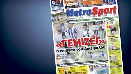 Το πρωτοσέλιδο της Metrosport μπορείτε να το δείτε στην καλύτερη ανάλυση στη νέα κατηγορία του metrosport.gr όπου το πρωί θα μπουν και τα υπόλοιπα πρωτοσέλιδα του αθλητικού τύπου. Αυτά των κυριακάτικων εφημερίδων είναι ήδη αναρτημένα (εδώ). Βρίσκεται και στην κεντρική σελίδα, πάνω δεξιά.