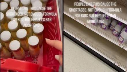 Η γυναίκα που βγάζει το βίντεο έγινε έξαλλη όταν είδε μια άλλη γυναίκα να έχει γεμίσει το καρότσι της με όλο το βρεφικό γάλα αφήνοντας άδεια τα ράφια με το συγκεκριμένο προϊόν.