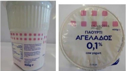 Πρόκειται για το προϊόν "ΓΙΑΟΥΡΤΙ ΑΓΕΛΑΔΟΣ 0,1%", σε συσκευασία των 400g και ημερομηνία λήξης 14.03.2016.