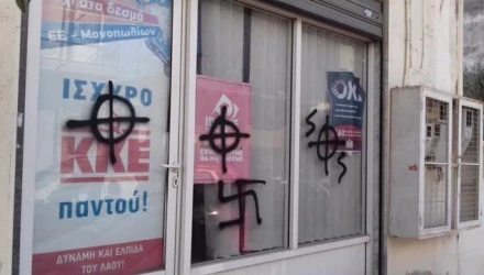 Ευκαρπία: Βανδάλισαν με φασιστικά σύμβολα τα γραφεία του ΚΚΕ