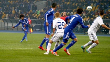 Δεν είχε τύχη στο Κίεβο η Τσέλσι, αφού τα δυο δοκάρια (Αζάρ, Γουίλιαν) της στέρησαν την ευκαιρία να ρίξει στο καναβάτσο την Ντιναμό, μένοντας έτσι στην τρίτη θέση!