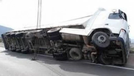 Υπό αδιευκρίνιστες συνθήκες και λίγο πριν τις 23:00, το βαρύ όχημα ανετράπη και μέρος του φορτίου του έπεσε στο οδόστρωμα.
