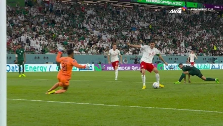 Μετά από τραγικό λάθος στην άμυνα της Σαουδικής Αραβίας, ο Λεβαντόφσκι έκλεψε την μπάλα και πέτυχε το πρώτο του τέρμα σε Παγκόσμιο Κύπελλο με τη φανέλα της εθνικής Πολωνίας.