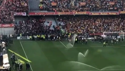 Από τα μεγάφωνα τους προειδοποίησαν ότι αν δεν σταματήσουν τα άσχημα περιστατικά θα διακοπεί το παιχνίδι με υπαιτιότητα των γηπεδούχων. Η αστυνομία μπήκε μέσα στον αγωνιστικό χώρο και σταμάτησε τους εισβολείς. Το δεύτερο ημίχρονο συνεχίστηκε κανονικά με μια μικρή καθυστέρηση.