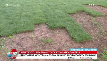 Άγνωστοι έκλεψαν κομμάτια από το γκαζόν παιδικής χαράς, όπως γνωστοποίησε ο δήμαρχος Ελληνικού-Αργυρούπολης, Γιάννης Κωνσταντάτος.
