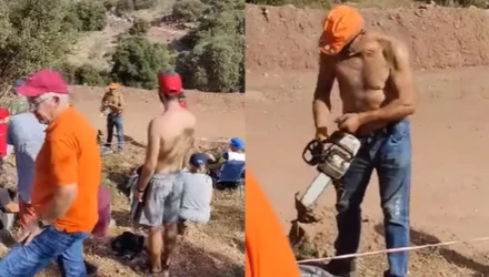 Στο νέο, ακόμη πιο ντροπιαστικό ντοκουμέντο, ένας άντρας παίρνει την απόφαση να κόψει ένα δέντρο με αλυσοπρίονο που έχει φέρει μαζί του (!) γιατί έκρυβε τη θέα σε αυτόν και τους υπόλοιπους που βρίσκονταν στο σημείο.