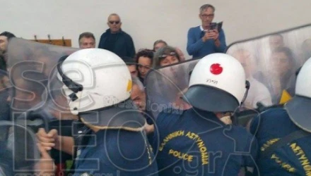 Μεγάλη ένταση επικρατεί αυτή την ώρα μέσα στο δικαστικό μέγαρο Θεσσαλονίκης , ανάμεσα Συλλογικότητες Ενάντια στους Πλειστηριασμούς και την αστυνομία (δείτε εδώ).