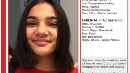 Τα ίχνη της Emilia Μ. ηλικίας 14,5 ετών χάθηκαν από το Πλαγιάρι Θεσσαλονίκης την Κυριακή 31 Μαρτίου στη 13:30.