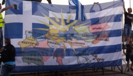 Οι διαδηλωτές έκαναν κατάθεση στεφανιού στο άγαλμα του Μ Αλεξάνδρου και μετά είπαν τον εθνικό ύμνο και αποχώρησαν.