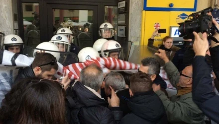 Τα μέλη του συντονισμού επιχείρησαν να εισέλθουν εντός των γραφείων, ωστόσο εκεί συνάντησαν τον φραγμό των ΜΑΤ.