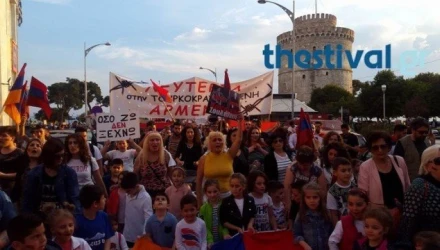 Πορεία μνήμης πραγματοποιούν αυτή την ώρα Αρμένιοι της Θεσσαλονίκης, για τη γενοκτονία των προγόνων τους από τους Τούρκους το 1915, με σύνθημα "Ποτέ δεν ξεχνώ".