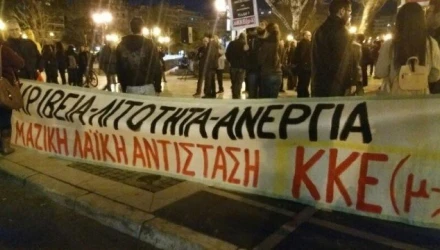 Πορεία πραγματοποιούν αυτήν την ώρα μέλη του Συντονισμού Συλλογικοτήτων Θεσσαλονίκης, της ΛΑ.Ε., της ΟΚΔΕ, της ΑΝΤΑΡΣΥΑ και του ΚΚΕ (μ-λ), στο κέντρο της Θεσσαλονίκης.