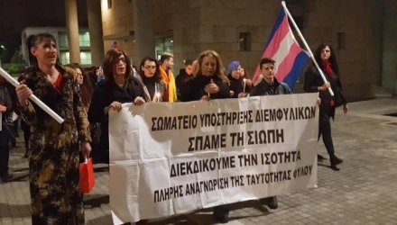 Πορεία προς το υπουργείο Μακεδονίας Θράκης πραγματοποιούν μέλη του Σωματείου Υποστήριξης Διεμφυλικών (Σ.Υ.Δ.) με αφορμή τη Διεθνή Ημέρα Τρανς Μνήμης (20 Νοεμβρίου).