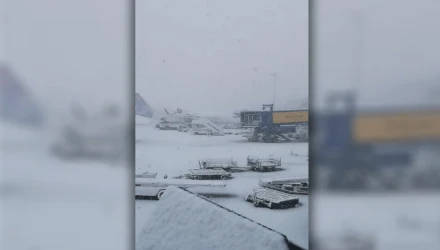 Το χιόνι έχει καλύψει την πίστα του αεροδρομίου, όπως θα δείτε στο παρακάτω βίντεο.