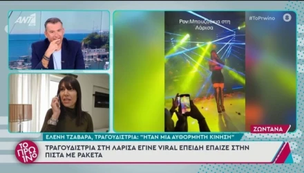 Για το στιγμιότυπο με τη ρακέτα στην πίστα μίλησε στον ΑΝΤ1, η τραγουδίστρια Έλενα Τζαβάρα, η οποία εξήγησε πώς έφτασε να «παίζει» πάνω στην πίστα, τη στιγμή που τραγουδούσε.