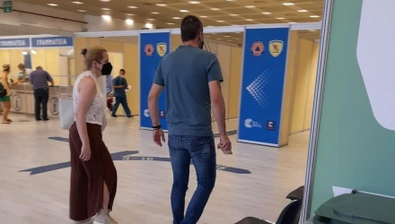 Ο Ουρουγουανός τεχνικός με τη συνοδεία της συζύγου του, Λάουρα, πήγε στο εμβολιαστικό κέντρο της Διεθνής Εκθέσεως Θεσσαλονίκης, ώστε να εμβολιαστεί και αυτός με τη σειρά του.