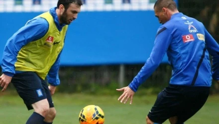 Ο λόγος για τους Βασίλη Τοροσίδη και Χοσέ Χολέμπας, που προπονήθηκαν υπό τις οδηγίες του Κώστα Τσάνα και του Ηρακλή Μεταξά, καθώς ο Μίκαελ Σκίμπε απουσίαζε. Ο ομοσπονδιακός τεχνικός βρίσκεται στο Ούζιτσε, προκειμένου να παρακολουθήσει το παιχνίδι της αντιπάλου στα προκριματικά του Μουντιάλ, Κύπρου με την Σερβία.