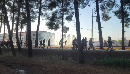 Κατά πληροφορίες του onlarissa.gr, το θερμόμετρο ανέβηκε όταν κάποιοι επιχείρησαν να ξεφουσκώσουν τα λάσχια λεωφορείου της αστυνομίας.
