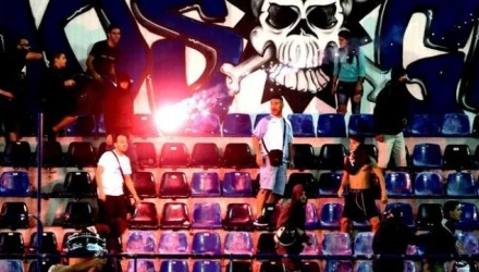Ένταση σημειώθηκε στο γήπεδο του Περιστερίου, την ώρα του φιλικού αγώνα ανάμεσα στις δύο ομάδες. Συγκεκριμένα οι «πράσινοι» οπαδοί έσπασαν το διαχωριστικό και πέταξαν φωτοβολίδες κατά των οπαδών του Ατρομήτου, με το ματς να διακόπτεται για λίγα λεπτά.