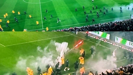 Η ένταση δεν άργησε να ξεφύγει από κάθε έλεγχο, με τις δύο πλευρές να προχωρούν ακόμη και σε ανταλλαγή φωτοβολίδων, δημιουργώντας αποπνικτική ατμόσφαιρα και σοβαρούς κινδύνους για την ασφάλεια όσων βρίσκονταν στο γήπεδο. Ο διαιτητής της αναμέτρησης αναγκάστηκε να διακόψει το παιχνίδι για περίπου 20 λεπτά, μέχρι να αποκατασταθεί η τάξη.