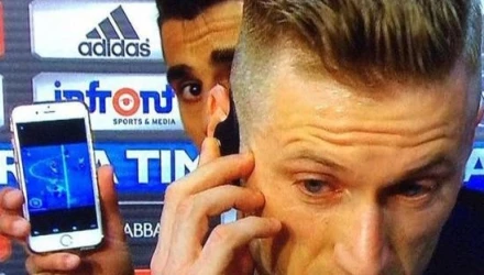 Απίστευτο κι όμως αληθινό! Την ώρα που ο Ιγκνάσιο Αμπάτε έκανε δηλώσεις στη μικτή ζώνη, ο άσος της Κάλιαρι, Ντάνι Αβελάρ, πέρασε από πίσω του και έδειξε στην κάμερα το κινητό του με μια φωτογραφία της επίμαχης φάσης.
