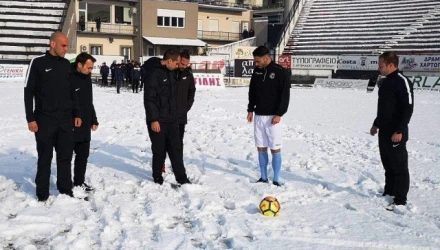 "Την προγραμματισμένη ώρα έναρξης του παιχνιδιού Δόξα Δράμας – ΑΕ Καραΐσκάκης (15.00), ο διαιτητής της αναμέτρησης Πέτρος Τσαγκαράκης του συνδέσμου Χανίων, μαζί με τους βοηθούς του Αντώνη Αναστασάκη (Χανιά) και Γιάννη Κοκμοτό (Δωδεκανήσου) και τον τέταρτο διαιτητή Άγγελο Αγγελάκη (Μακεδονίας), επιθεώρησαν τον αγωνιστικό χώρο του γηπέδου, ο οποίος κρίθηκε επικίνδυνος για τη σωματική ακεραιότητα των ποδοσφαιριστών.