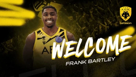 Ο Φρανκ Μπάρτλεϊ είναι και με τη βούλα παίκτης της ΑΕΚ, με τον Αμερικανό γκαρντ να βγάζει να ασπρόμαυρα του ΠΑΟΚ, που φορούσε την περσινή σεζόν, και να φοράει τα κιτρινόμαυρα της Ένωσης.