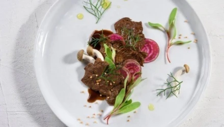 Η εν λόγω μπριζόλα είναι απλώς πρωτότυπο. Έχει την ίδια κρεάτινη εμφάνιση με τη συμβατική μοσχαρίσια, οι μεγάλοι σεφ δεν έχουν κανέναν λόγο να ντραπούν για να τη σερβίρουν. Επιπλέον - και αυτό ας ληφθεί σοβαρά υπόψη - δεν απαιτούνται τα στρέμματα γης, οι ποσότητες νερού, οι βοοτροφές και όλοι οι άλλοι πόροι που απαιτεί η εκτροφή βοοειδών για παραγωγή κρέατος.